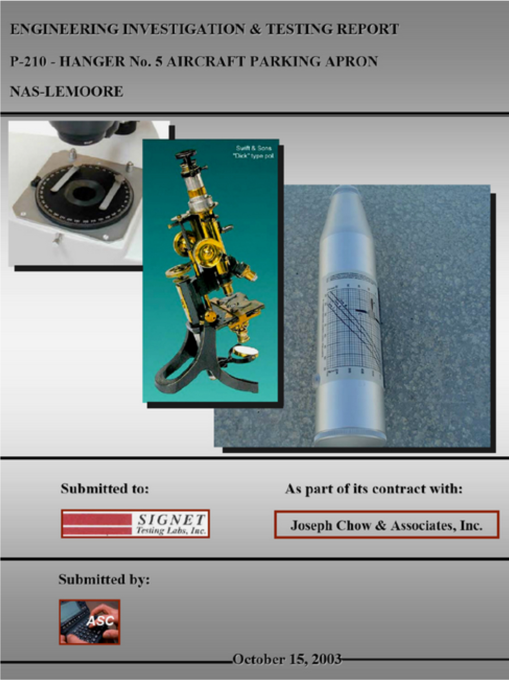 Dr. Dots Oyenuga led a team of experts from ASC & Signet Testing Labs on a 250,000 SF Concrete Construction QA/Investigation and Testing program at NAS LeMoore in Fresno, California.